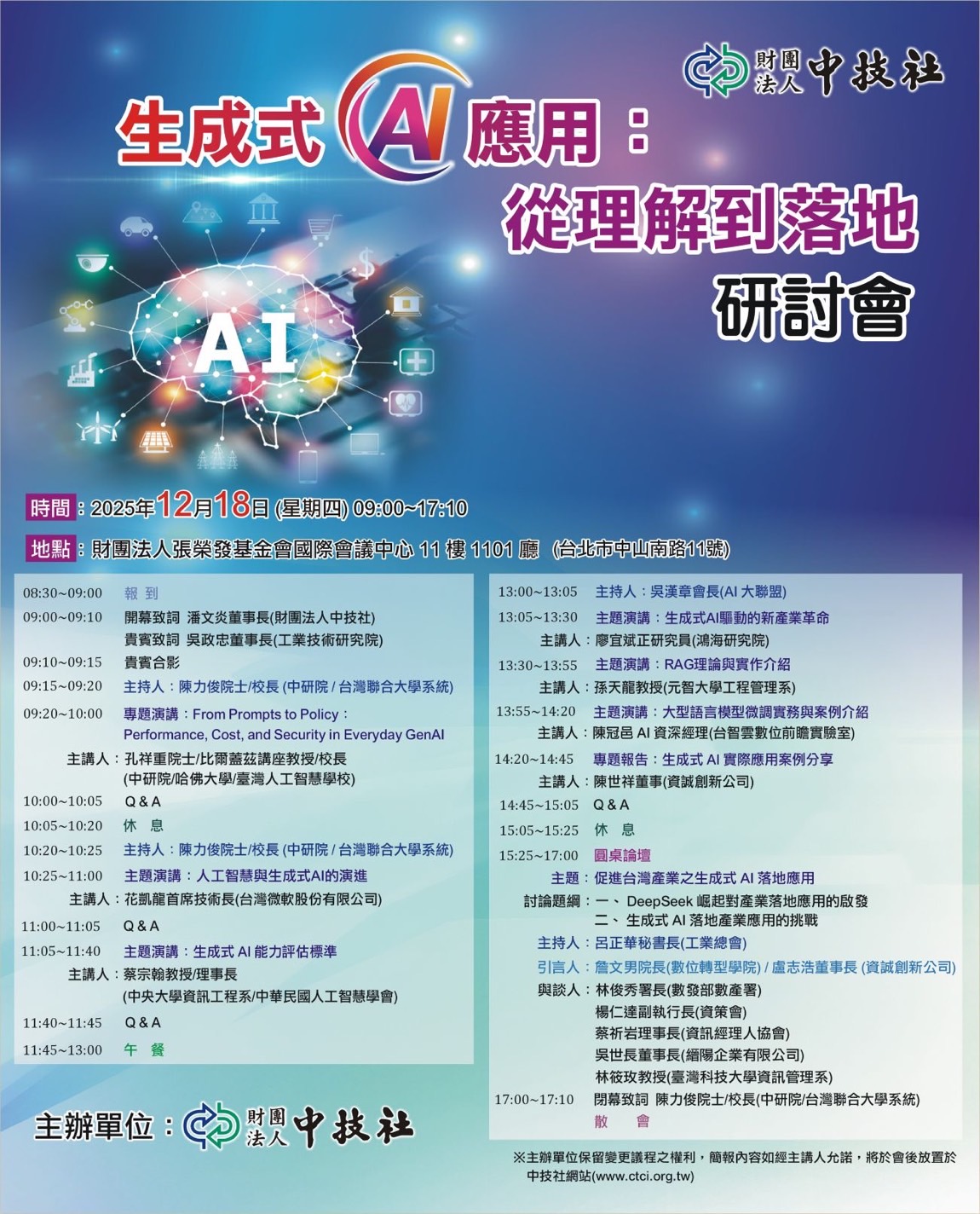 🎉🎉 「生成式AI應用: 從理解到落地」研討會 🎉🎉